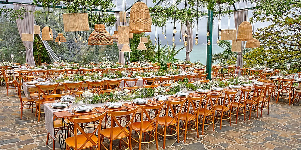 It can be a large courtyard with green grass as far as the eye can see or you can also go for a lush vineyard and it will look amazing. Then you can decorate the space just like a regular garden tea party, but a bit more over-the-top and flowery, because it’s a wedding and you will be good to go.